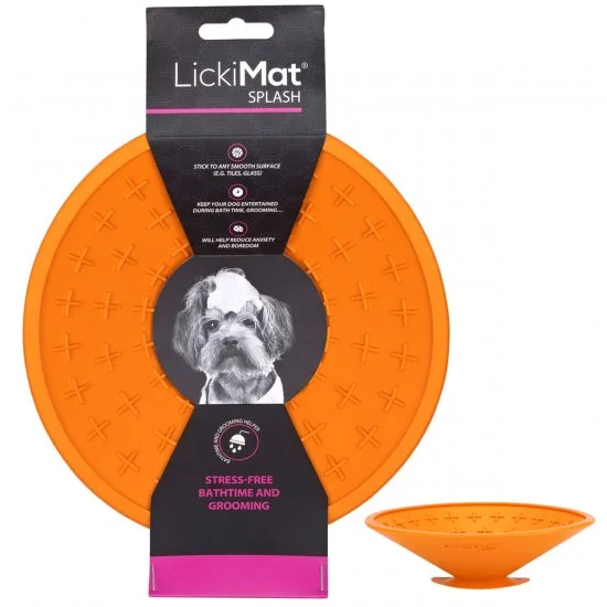 LickiMat Splash is the perfect distractor for grooming and bathing thanks to the suction cup. Also perfect for vertical surfaces.