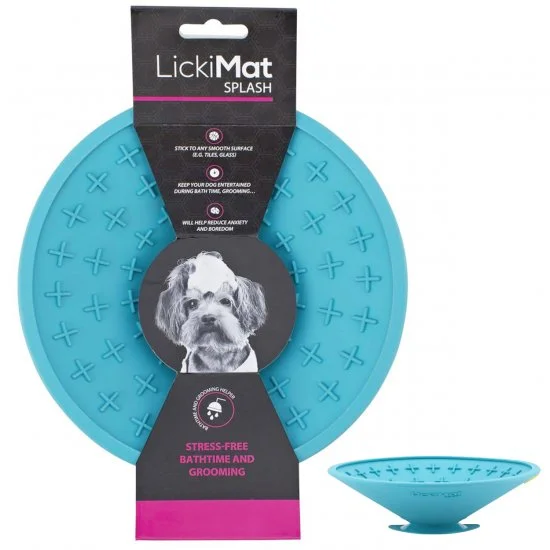 LickiMat Splash is the perfect distractor for grooming and bathing thanks to the suction cup. Also perfect for vertical surfaces.